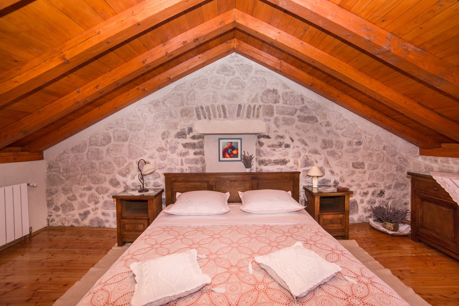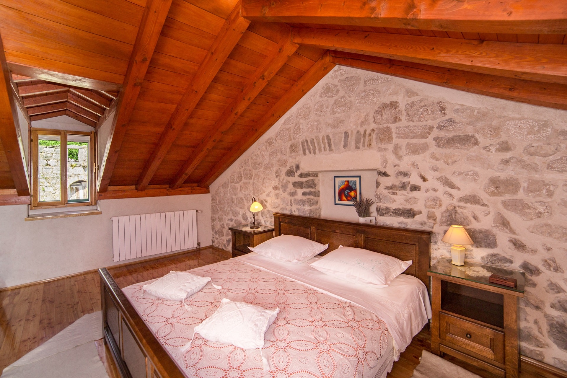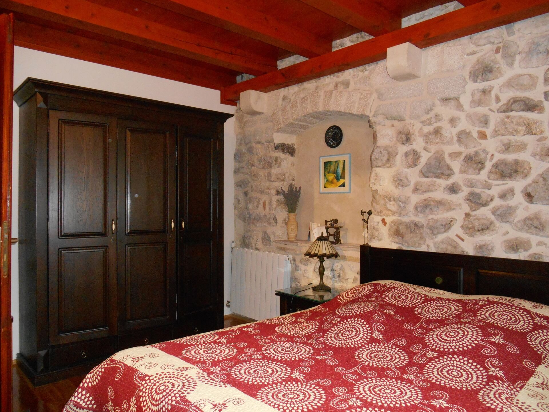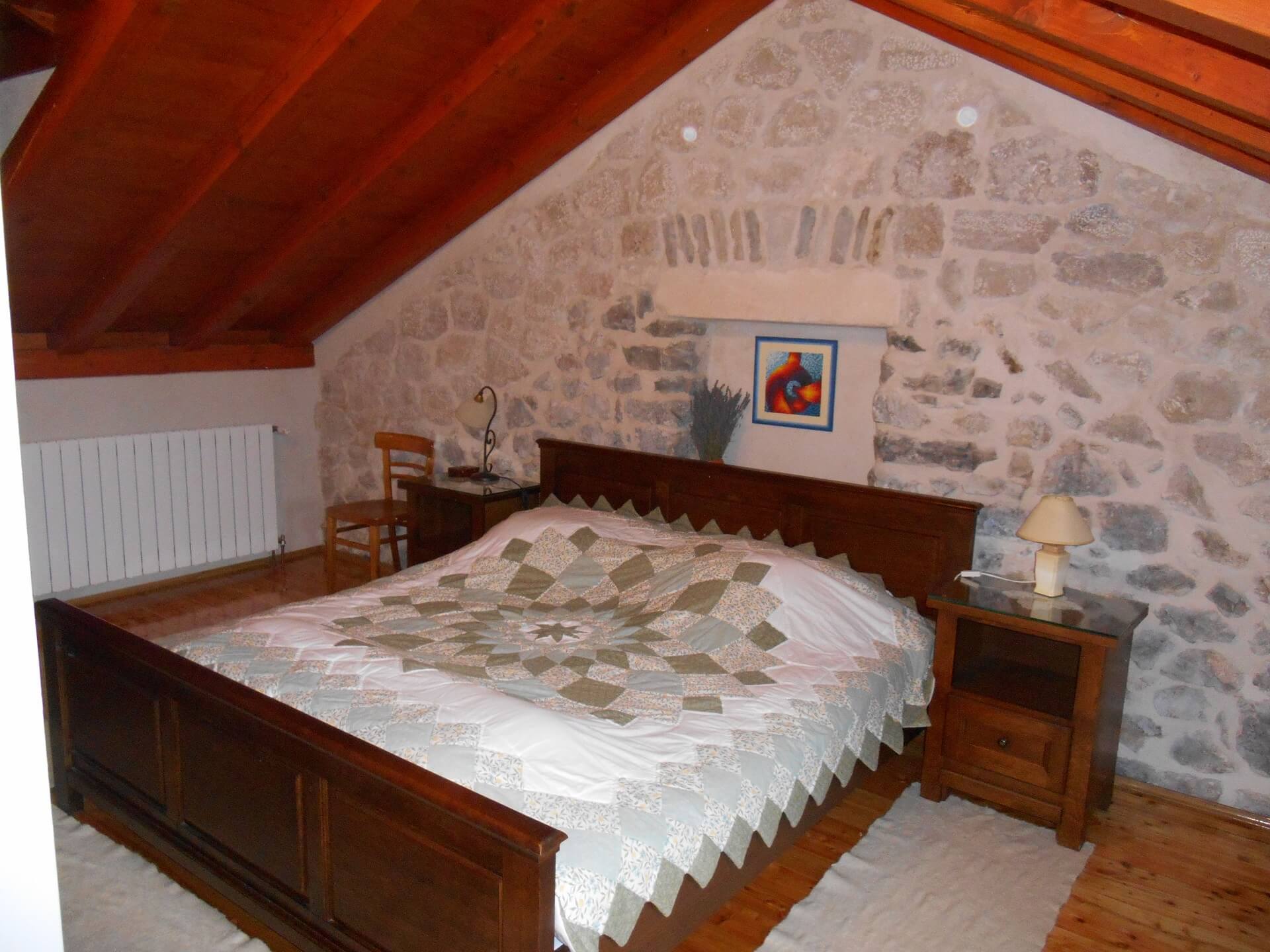 The rooms are spacious 25m2 with stone walls and high-quality solid wood furniture, for the best atmosphere. Public parking, free and secured.