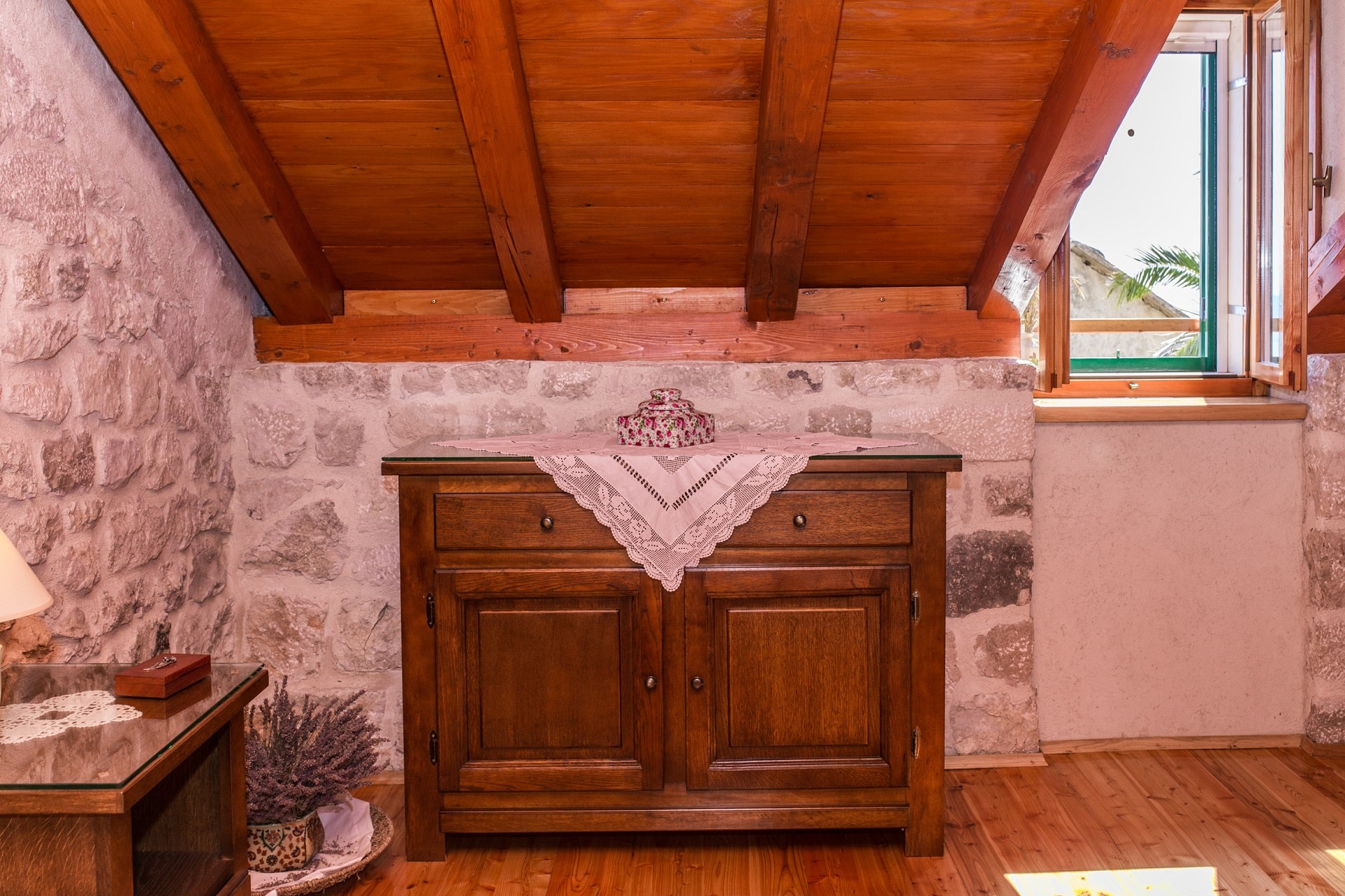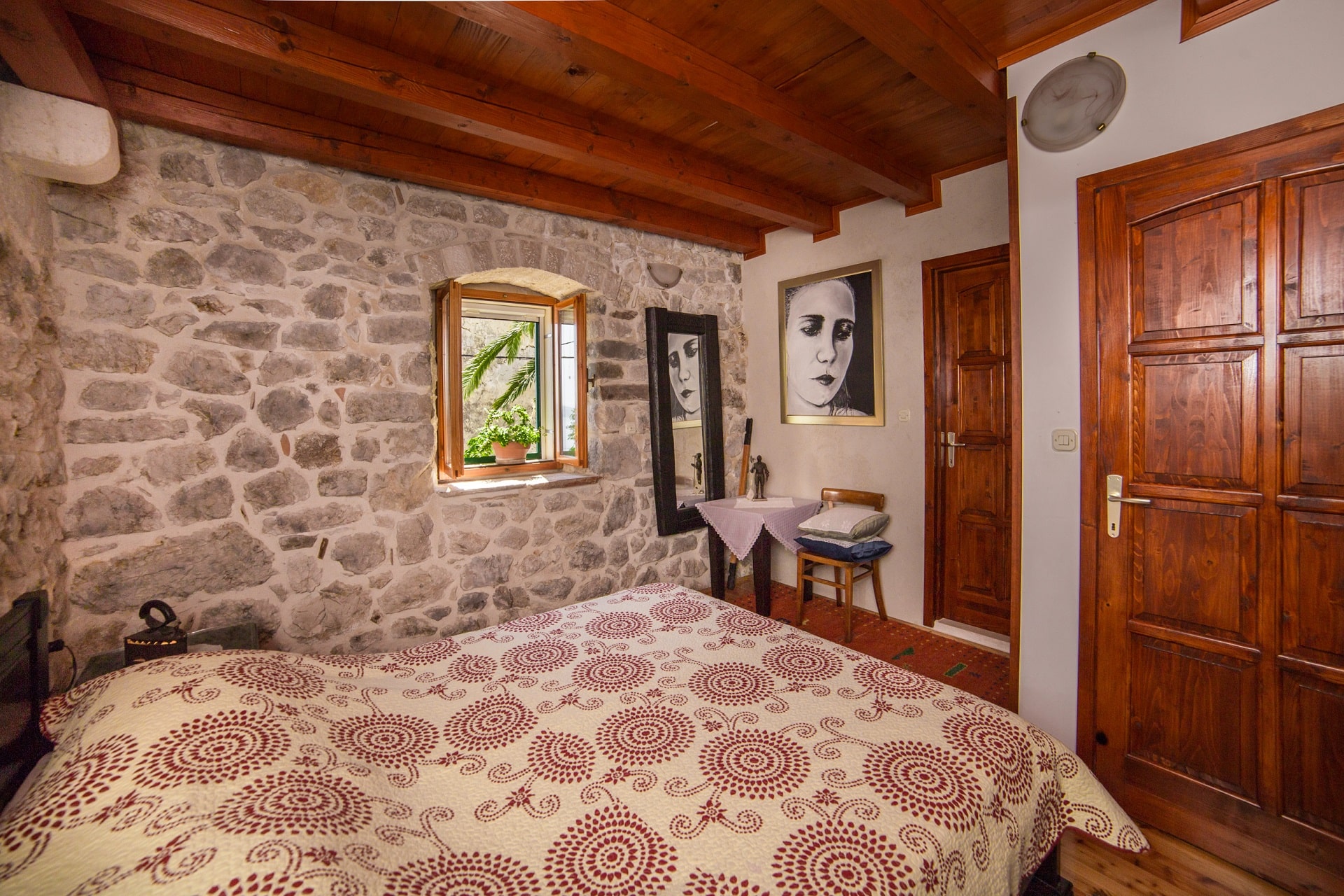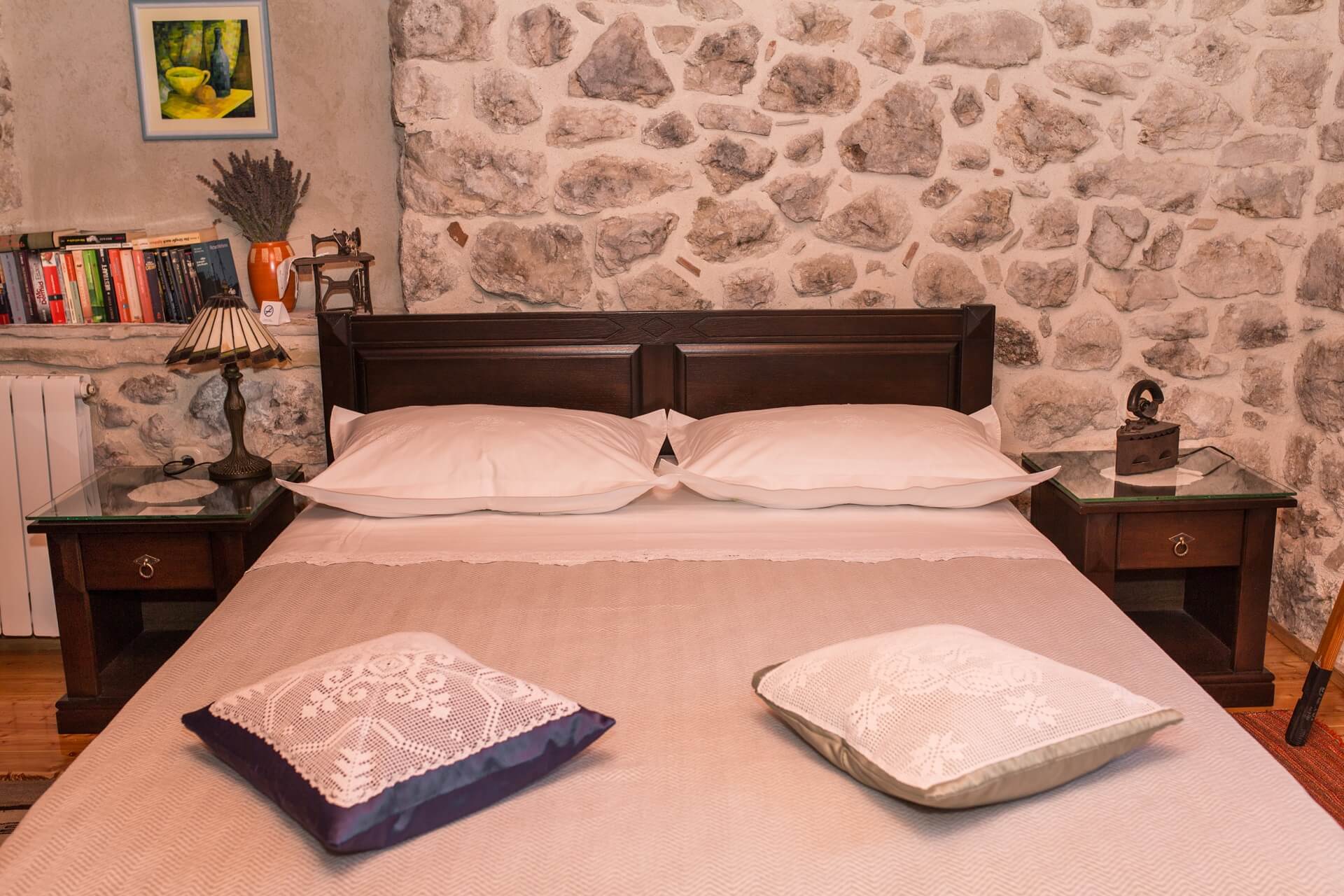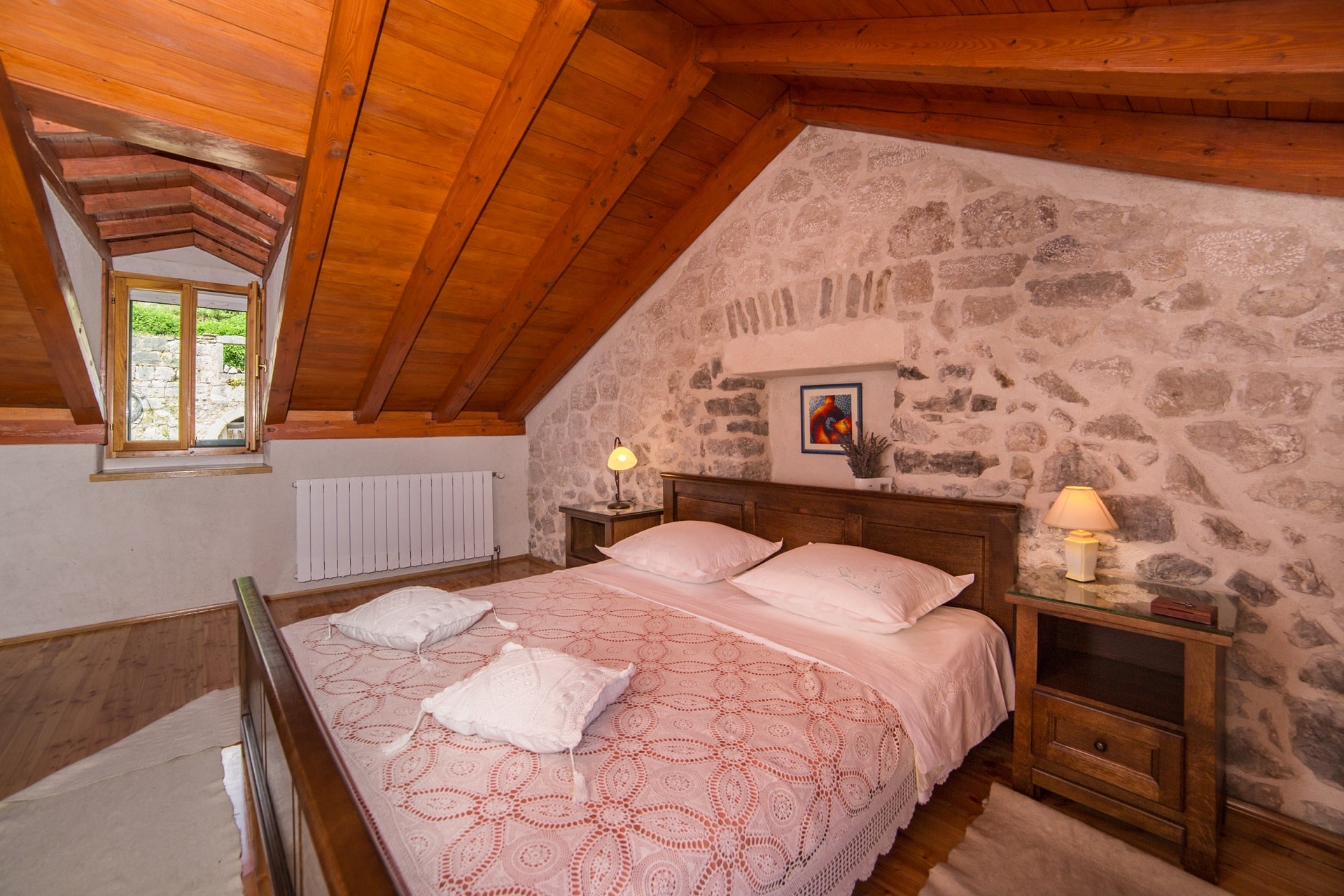 The rooms are spacious 25m2 with stone walls and high-quality solid wood furniture, for the best atmosphere. Public parking, free and secured.