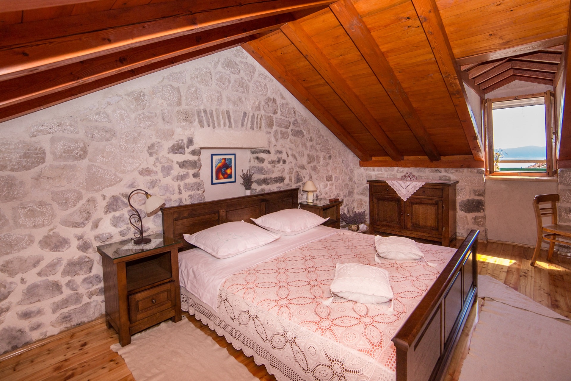 It has a beautiful view of the sea and the islands of Hvar, Brač, Korčula, and Pelješac, and the divine sunrises and sunsets to remember